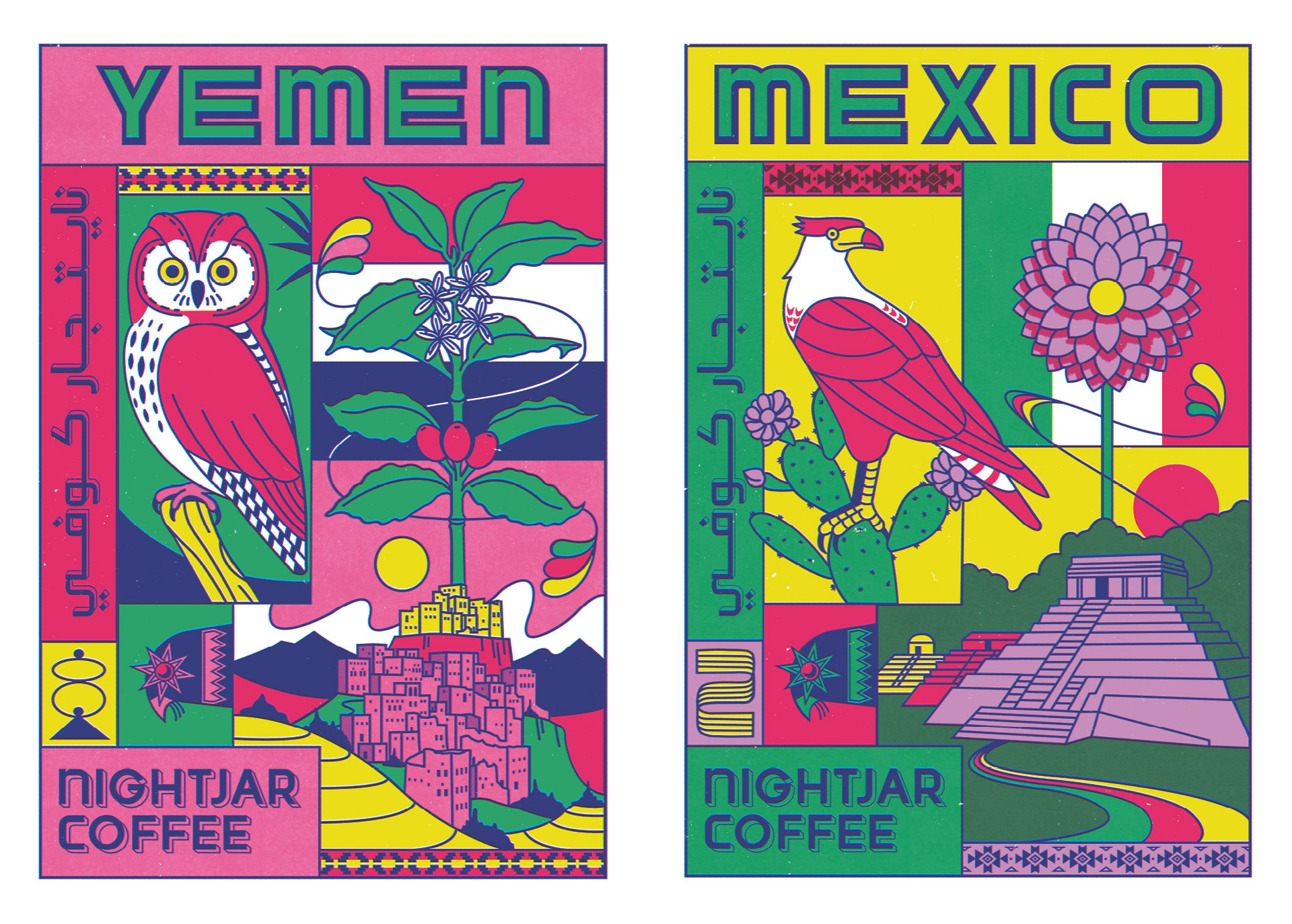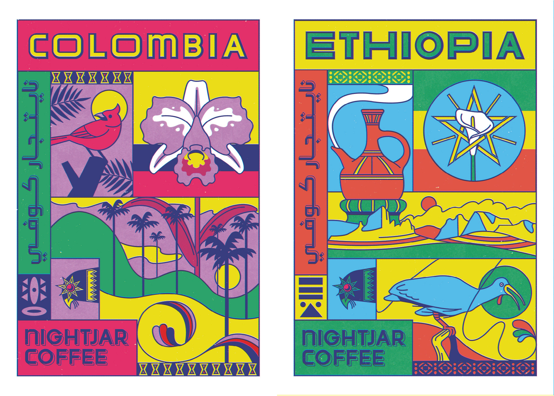 Identity design for Dubai-based coffee roastery and cafe brand.