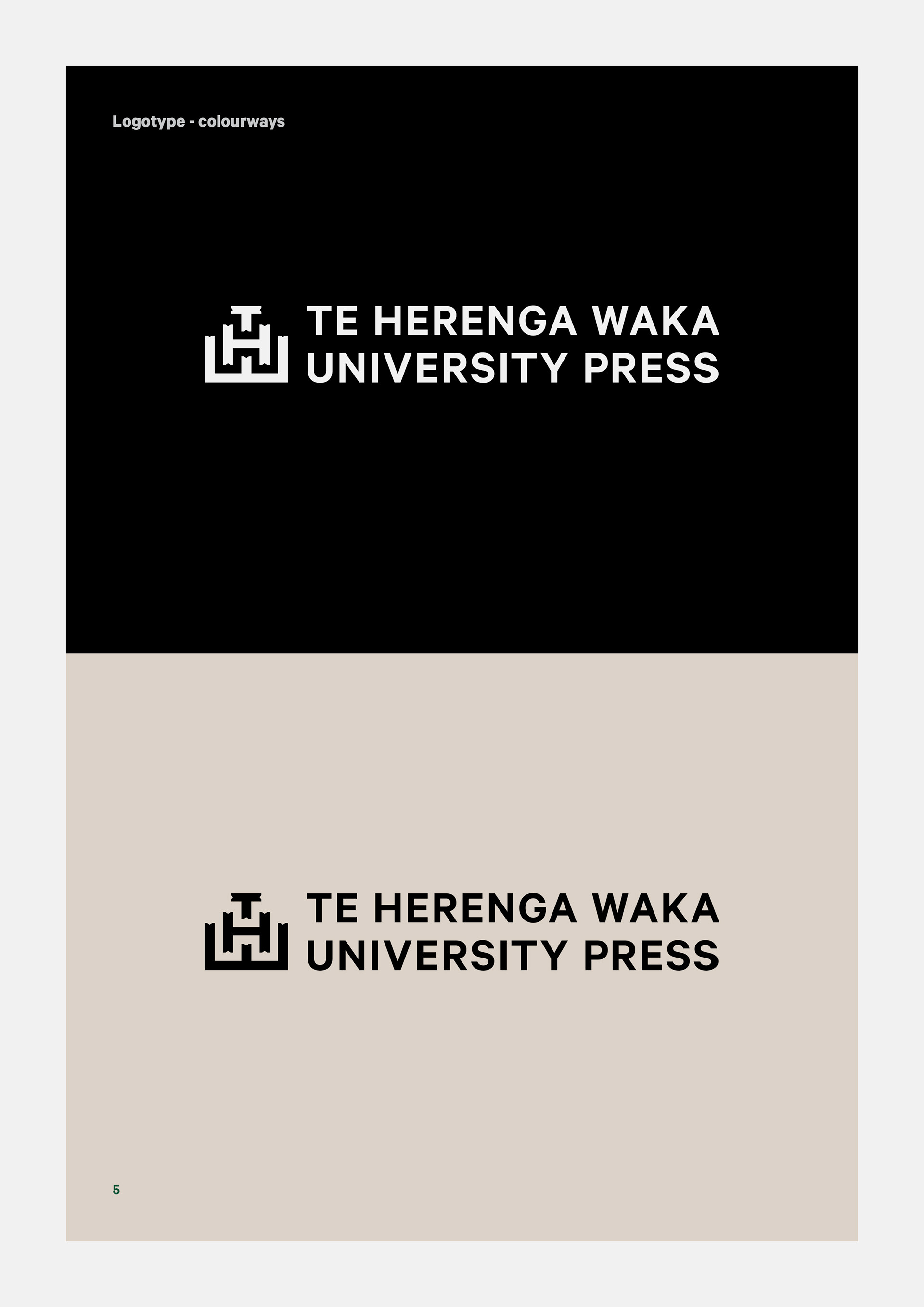 Brand identity for Te Herenga Waka University Press, Wellington.